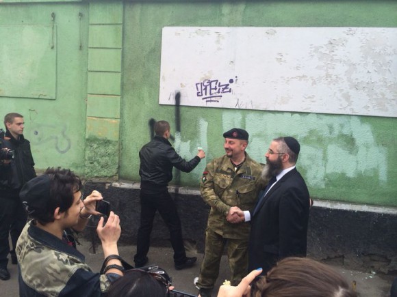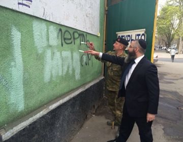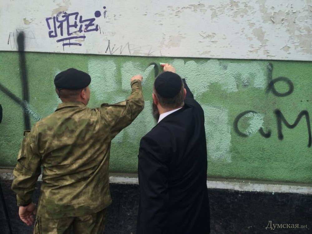В Одессе евреи вместе с УНСО закрасили антисемитские граффити