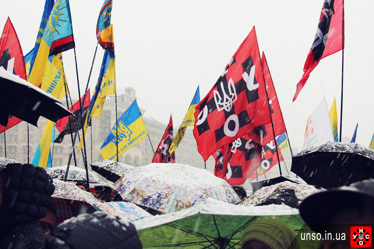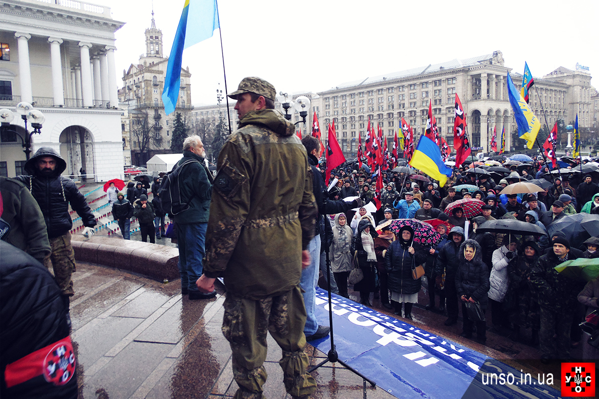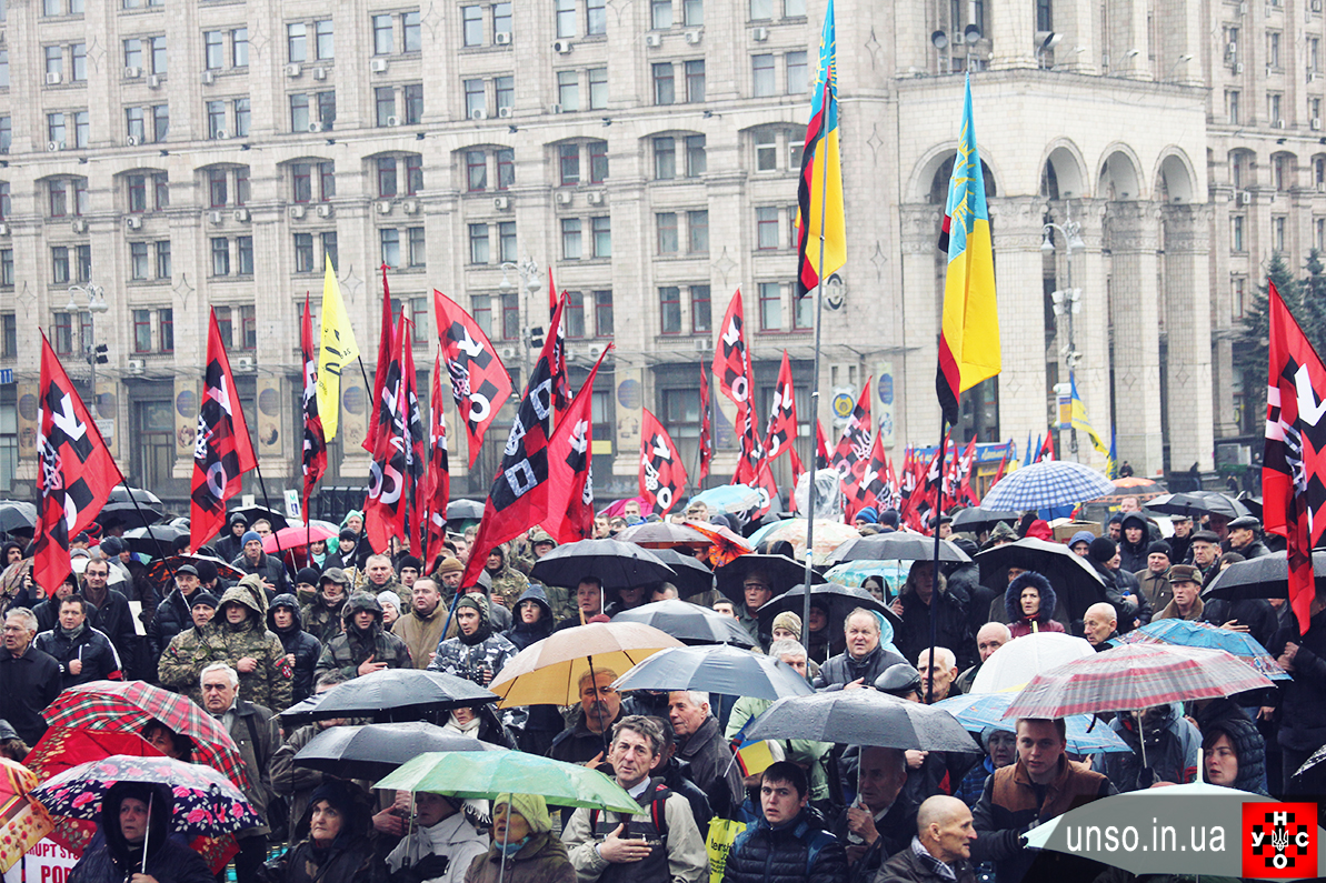Віче, організоване УНА-УНСО на Майдані, зібрало більше 2 000 активістів та симпатиків УНА-УНСО з усіх регіонів України, а також бійців добровольчого батальйону УНСО, які приїхали прямо з передової з Маріуполя та інструкторів з бойової підготовки з Навчального центру УНСО в Гущинцях.