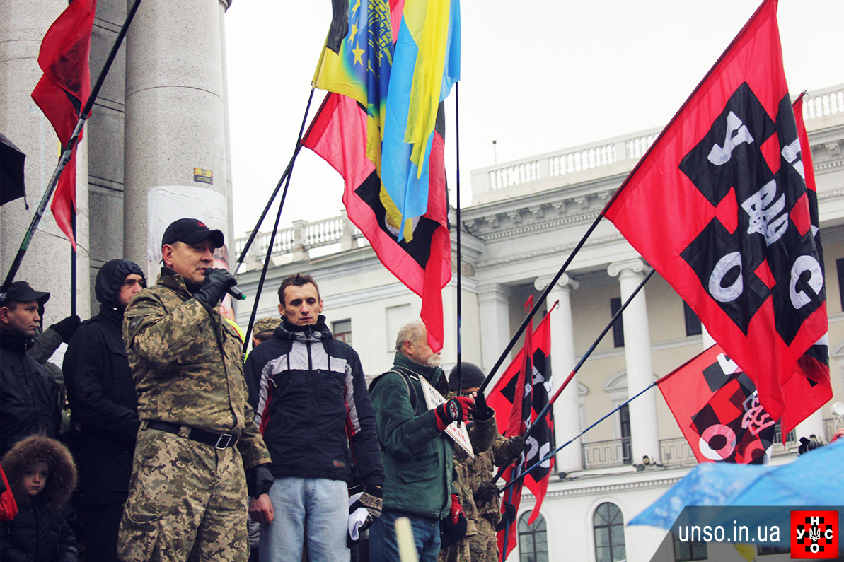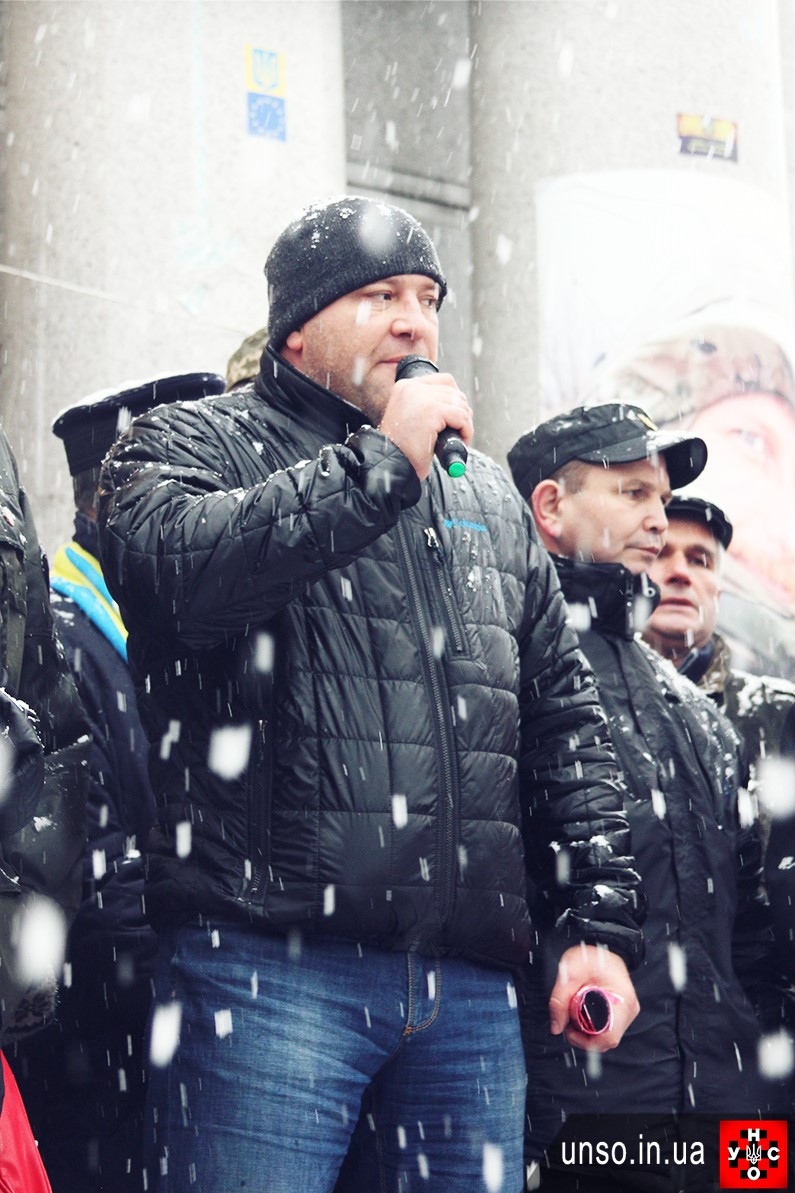 До нас приєднались однодумці з Народного Руху України, Конгресу Українських Націоналістів, Спілки офіцерів України, Автомайдану, Українського Козацтва, ГО "Народний Порятунок" та багато громадян. Говорили про річницю розгону студентів на Майдані, про два роки бездіяльності влади, про корупцію в правоохоронній та судовій системі, про політв'язнів, про безліч наболілих та гострих питань...