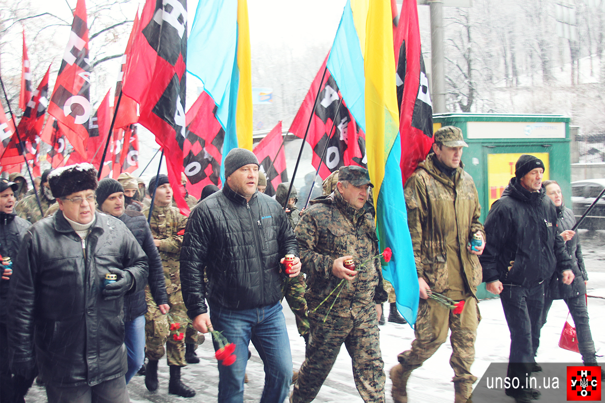 Вшанували пам'ять полеглих на Майдані та на фронті. Колоною УНСОвці та прості перехожі пройшли до місця розстрілу Михайла Жизнєвського "Локі" на Грушевського, поклали свічки та квіти до пам'ятника Герою, який був активістом УНСО і віддав життя за Україну 22 січня 2014 року.