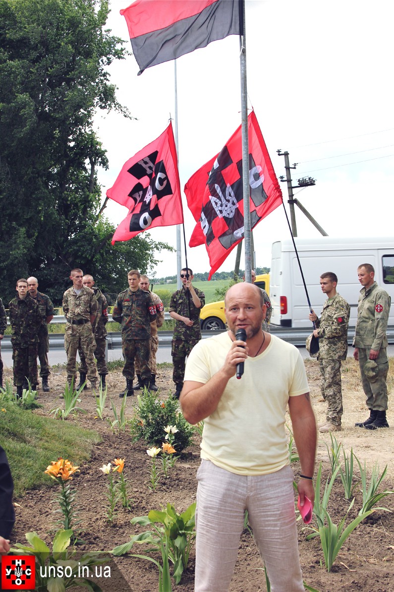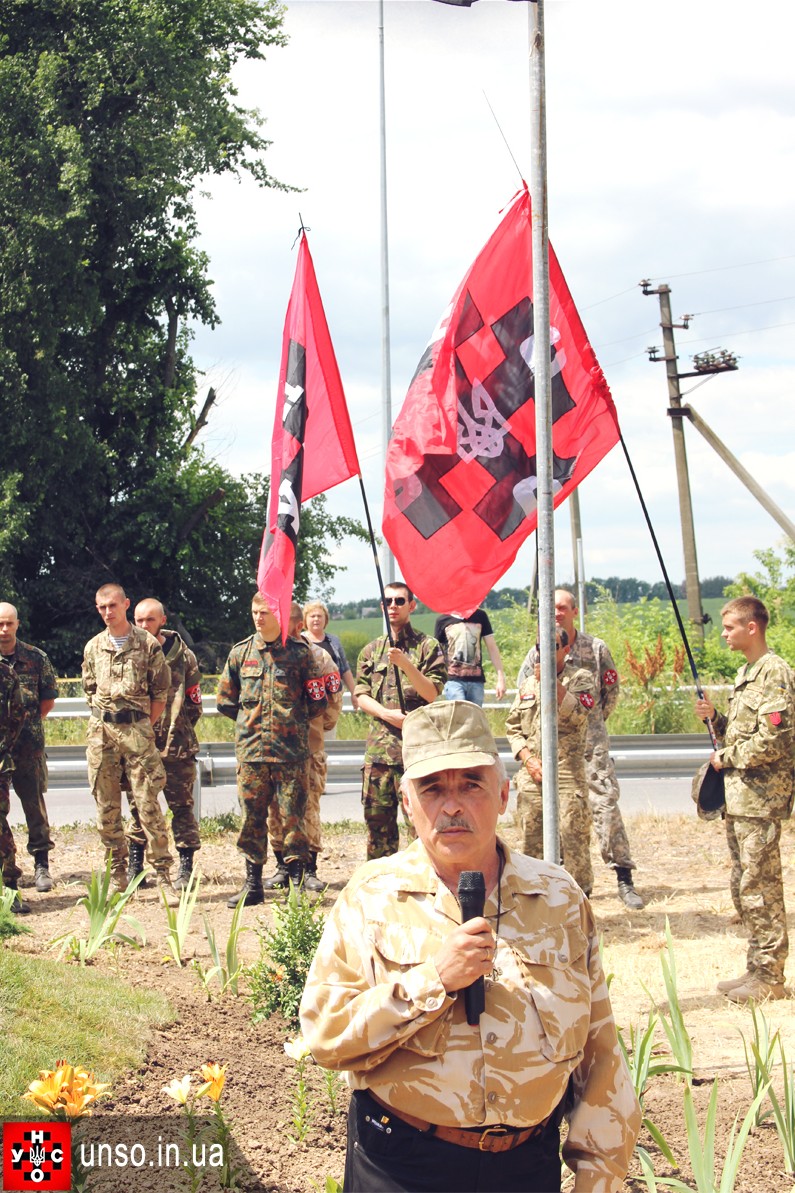 Головний Командир УНСО, голова політичної партії УНА-УНСО Костянтин Фуштей, у своєму зверненні до місцевих мешканців та активістів організації коротко і по суті зазначив, що "відкриття меморіалу є відновленням історичної справедливості, і що про цей меморіал будуть писати в підручниках історії, розповідати про нього дітям". Відмітив Костянтин і те, що "в річницю створення УНА, ми маємо пам'ятати, що УНСО завжди стояла на засадах відновлення і посилення армії та обороноздатності, а саме з цією проблемою стикнулася зараз Українська держава у боротьбі з російсько-терористичними агресорами, і саме ці події є об`єднуючим фактором для Української Нації, яка стає сильнішою і здобуває повагу в світі. Адже нам ніхто ніколи не допоможе, крім нас самих".