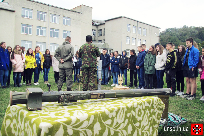 До дня Захисника України, який ми відзначатимемо 14 жовтня, крайова команда УНСО Буковини провела урок патріотичного виховання в чернівецькій ЗОШ №16. Школярам продемонстрували макети зброї та принципи роботи з нею.