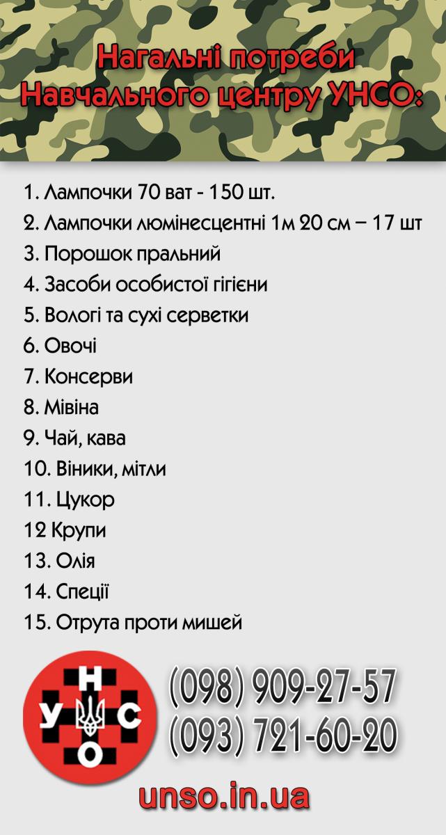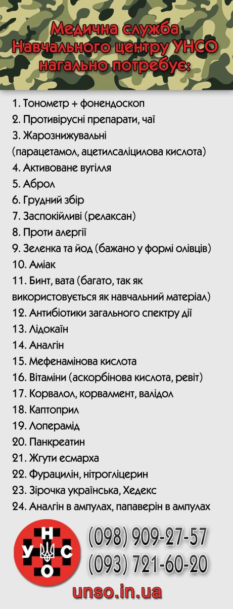 Навчальний центр УНСО потребує терміново продуктів та медикаментів