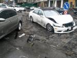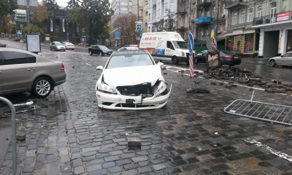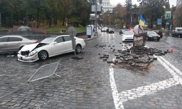 "Mercedes" рухався у бік урядового кварталу, ДТП сталася біля стадіону "Динамо". Після удару з пам'ятником автомобіль врізався в чорний "Volkswagen", який їхав по зустрічній смузі. Постраждали дві людини, які перебували у "Volkswagen", вони госпіталізовані.
