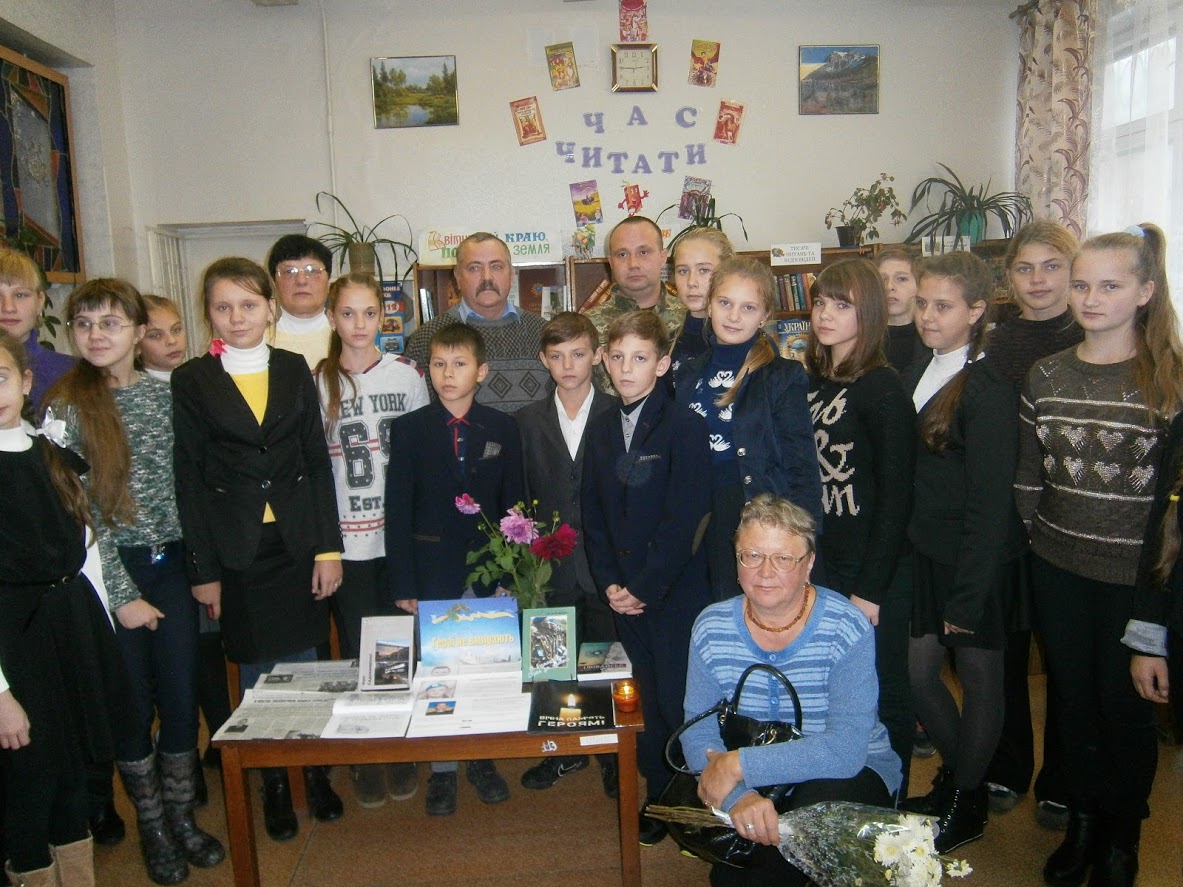 В бібліотеці для дітей оформлена фото-викладка «Герої не вмирають!». В кінці заходу була оголошена хвилина мовчання за загиблими. Усі присутні висловили щиру подяку гостям та подарували їм квіти.