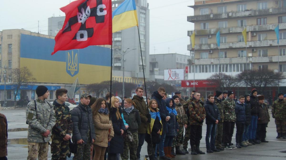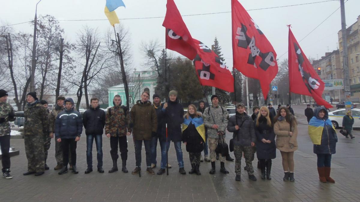 Представники громадської організації УНСО, батальйону оборони краю «Полісся» та інших політичних і громадських об’єднань поклали квіти до постаменту на майдані Соборному, де колись стояв пам’ятник Леніну. Нині на постаменті висить банер з фотографіями військовослужбовців Збройних сил України, які загинули під час конфлікту на Донбасі. Присутні вшанували пам’ять загиблих хвилиною мовчання.
