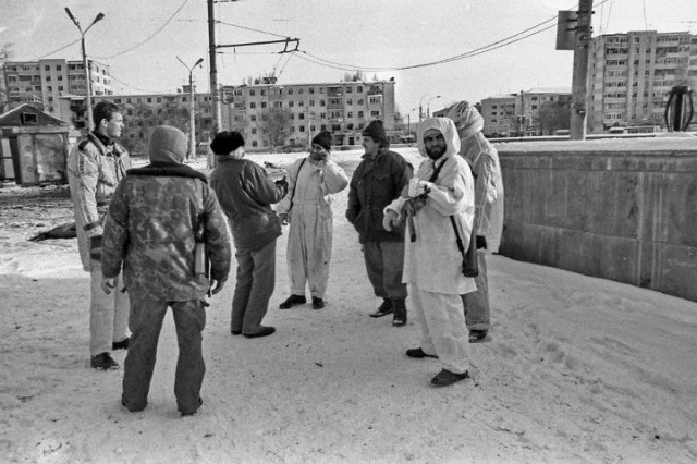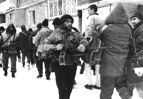 А на Новий 1995 Рік Грозний прикрасили десятками спалених російських танків, сотнями трупів "федералів". Коли в середині січня я разом з політв'язнем Анатолієм Лупинісом і п'ятіркою унсовців йшли вулицями Чеченської столиці, то через кожні 50-100 метрів бачили "сліди веселих свят" - кількість спаленої бронетехніки сягала вже сотні одиниць, а втрати "живою силою" - тисячі вбитих і поранених, сотні полонених. По вулицях бігали собаки з відгризеними людськими руками, було що їсти і щурам. В ті важкі дні Сашко, Олег "Беркут" (Челнов) і ще кілька наших хлопців тримали оборону Рескома - Республіканського Комітету і зустрічали "гостей" не кутею, а кулями. Реском знищували 500 кілограмовими і тонними бомбами, "Градом" і вогнем САУ. Тому, коли ми зустрілися з "Білим", то побувши у штабі півгодини, рушили від позицій одного польового командира до іншого і так до пізньої ночі. Потім була зустріч з Дудаєвим і наше прохання звільнити полонених, які мають українське коріння. Наступного дня таких 15 "федералів" звільнили - троє з них разом з Лупинісом гірськими стежками пішли на Грузію, а інших ми передали кубанським козакам, які приїхали домовлятися про звільнення своїх полонених земляків. Ми ж ще два місяці охороняли іноземних журналістів, деколи і зброя працювала...в перших числах лютого відступали з Грозного на Шалі. А потім і далі в гори...Ні допитів, ні катувань, ні розстрілів! Це було і залишається фсбешною брехнею. На прикладі Донбасу ми бачимо - це їхні методи боротьби.