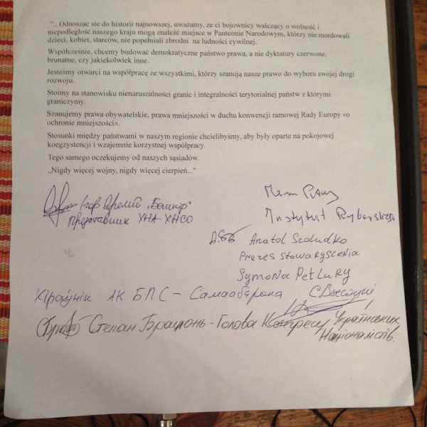 За підсумками візиту була підписана спільна Декларація. Крім українських патріотів, документ з польського боку підписав Маріуш Патей (Інститут ім. Р.Рибарського), від Білорусі Декларацію підписав Сергій Висоцький.