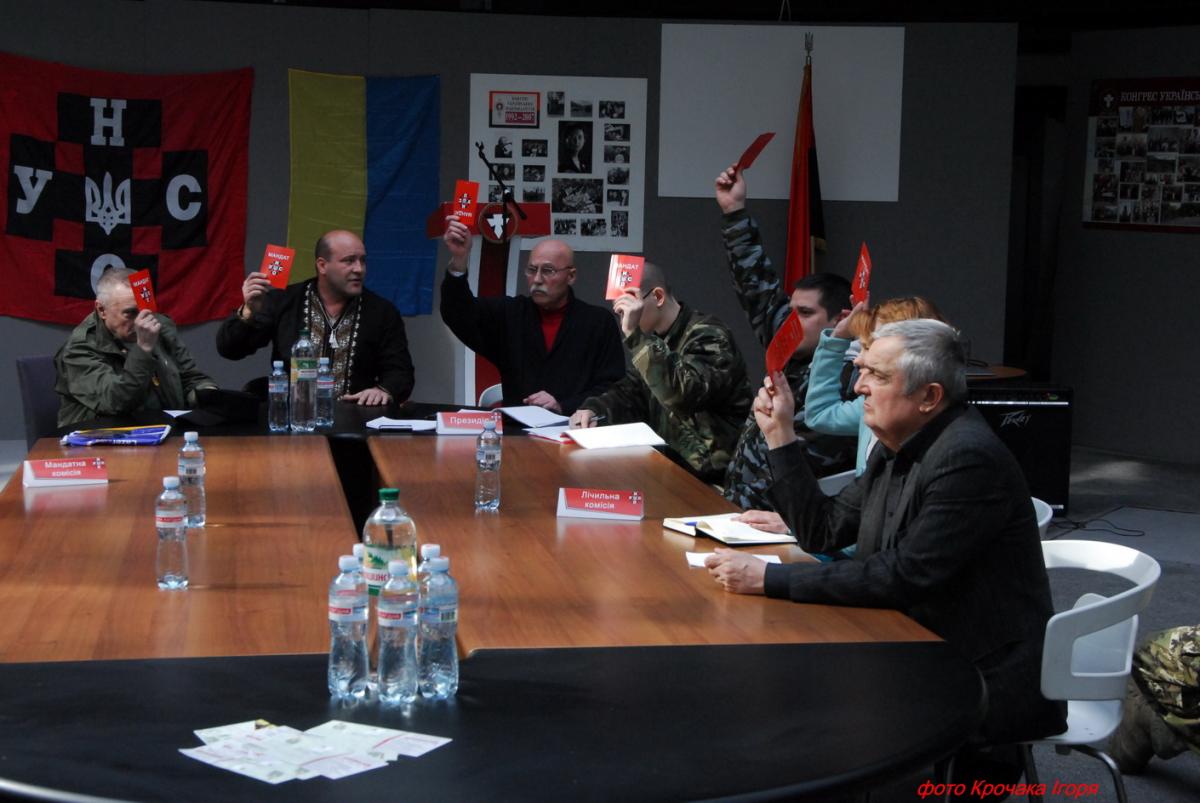 Головою політичної партії УНА-УНСО було обрано Костянтина Фуштея. Заступником Голови партії одноголосно обрано славнозвісного полковника Устима - Валерія Бобровича. Також до Проводу партії ввійшли С.Чумак, Н.Чангулі та Я.Лагнюк. Головою Виконому партії став Ярослав Лагнюк, до складу Виконкому ввійшли також Ю.Симчишин та А.Старостін. Центральну контрольно-ревізійну комісію очолить Петро Байса, а допомагатимуть йому контролювати фінансову діяльність партії П.Кузів та В.Джигар.