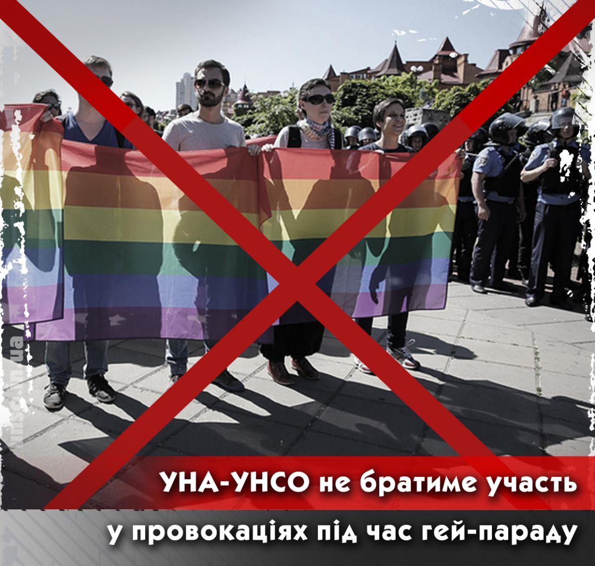 УНА-УНСО не братиме участі у можливих провокаціях під час проведення гей-параду у Києві