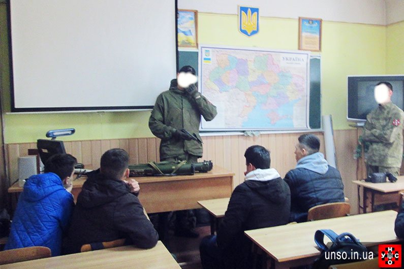 Під час невимушеної цікавої програми студенти активно знайомились з правилами поведінки в бойових умовах, вивчали будову АКМС та РПГ 26. Всі учасники були задоволені спілкуванням.