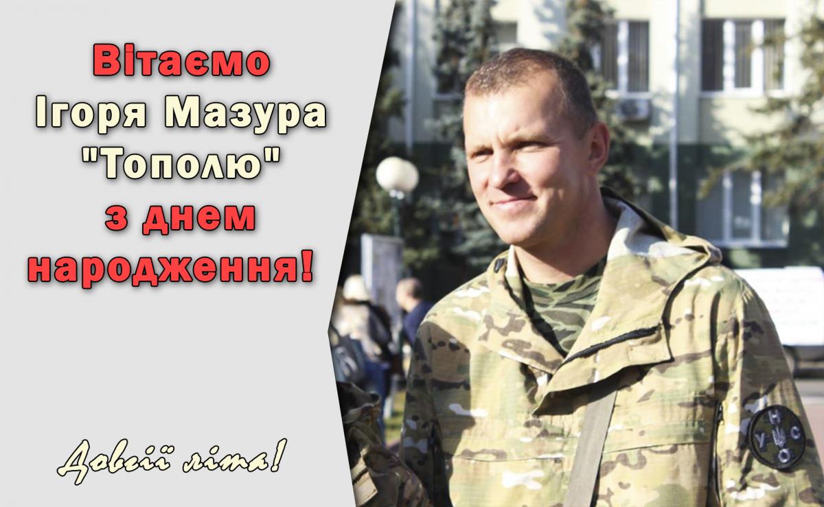 Сьогодні святкує день народження легендарний “Тополя”. Учасник бойових дій у Грузії у складі підрозділу “АРҐО”, учасник акції “Україна без Кучми”, відсидів за неї кілька років. Загалом легше перелічити збройні конфлікти на території колишнього СРСР, у яких він не брав участі, ніж навпаки. На сьогодні - офіцер батальйону УНСО ЗСУ, що бере участь у війні на сході. Кавалер Ордену Вахтанга Горгасалі 3-го ступеня від Президента Грузії, кавалер Ордену “За Мужність” від Президента України, кавалер Ордену “Пустельний Хрест” (вища нагорода УНСО) від Головного Командира УНСО, кавалер Ордену Архистратига Михаїла від Патріарха Філарета.