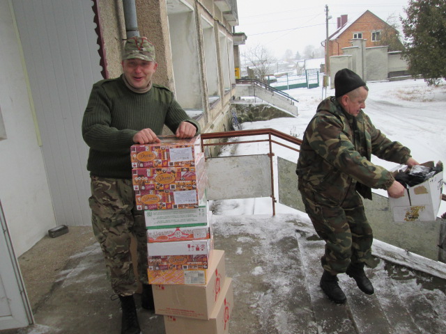 Наші активісти, координатор по західній Україні В.Конько та хлопці з Озерної з Я.Брилінським на чолі передали нашому другу і побратимові Юрі Симчишину різдвяні подарунки у вигляді харчів, печива, овочів, славнозвісного Озернянського хліба від П.Христинича і багато чого іншого.