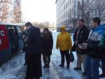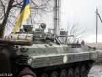 Наша БМП на бойовому чергуванні. Це - один з опорних постів, на якому знаходиться група швидкого реагування, в якій служать УНСОвці, щохвилини готова висунутись на допомогу, перехват чи позапланове патрулювання. Екіпаж періодично прогріває машину, аби скоротити до мінімуму час від отримання команди до виїзду.